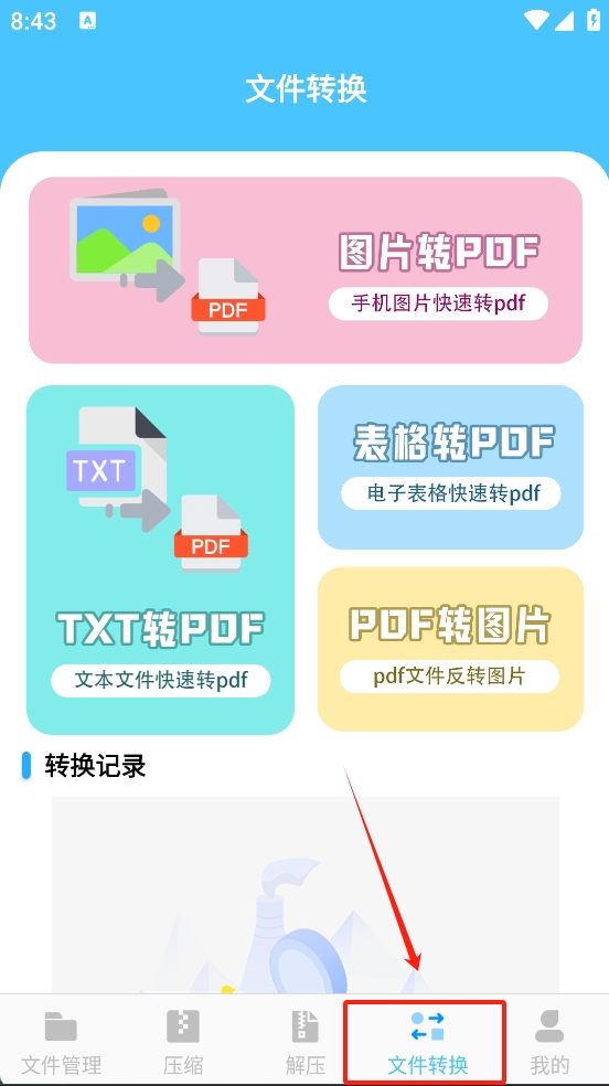 4、使用“文件转换”功能,将文件格式进行转换。