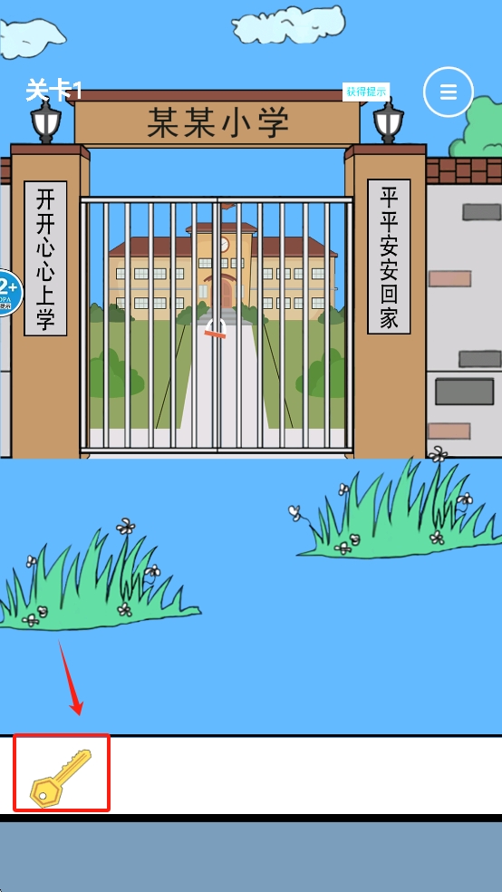 2、找到并点击屏幕下方的“钥匙”图标,打开学校大门。