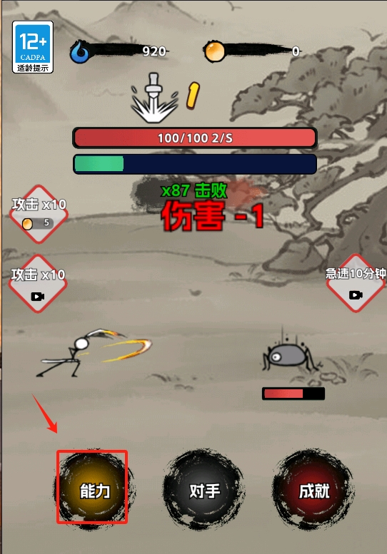 2、在战斗界面,点击下方的“能力”按钮,释放技能攻击敌人,造成额外伤害。