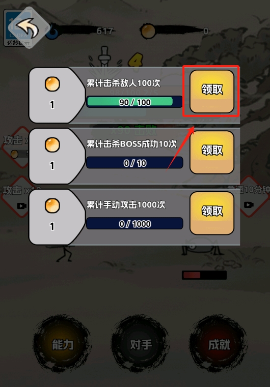 3、进入成就界面,达成条件后点击金色的“领取”按钮,获取丰厚奖励。