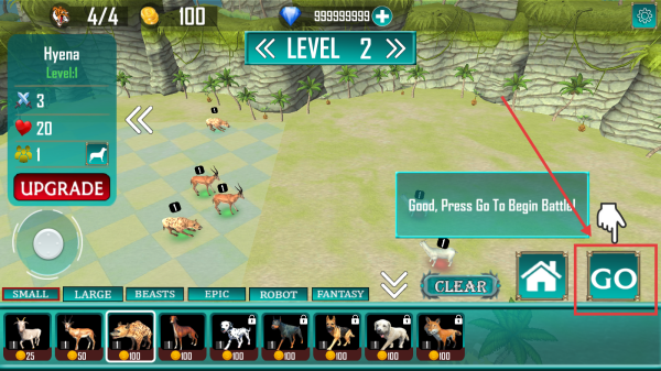 3、选择完上场动物后,点击【GO】即可自动开始对抗。
