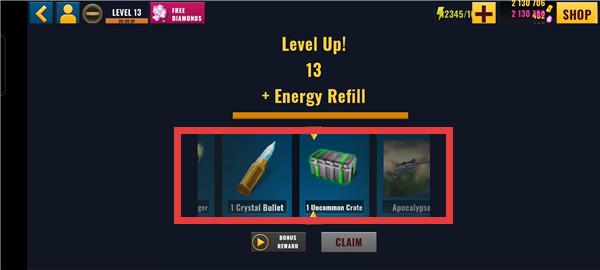 3、升级后,选择想要的奖励,再点击【CLAIM】即可获得。