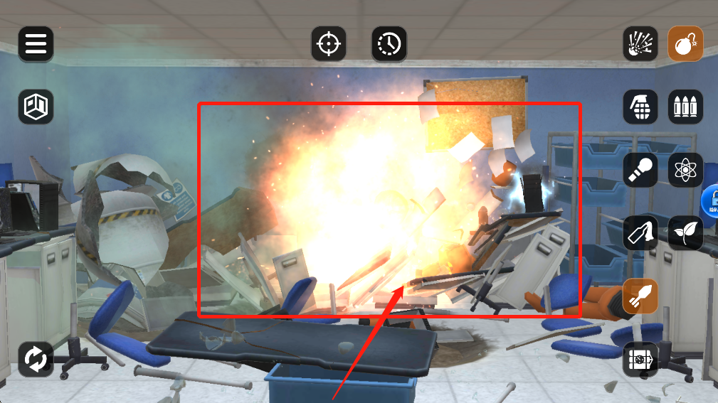 2、多样场景与武器:游戏内设有多个不同场景,每个场景都有独特的可破坏元素,玩家可以选择多种武器进行破坏。