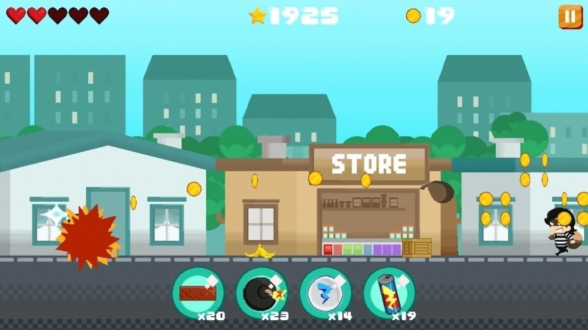 2.在追逐小偷的过程中,玩家可以投掷木板、砖块等道具。