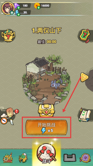 1、打开游戏,花费5体力开始挑战。