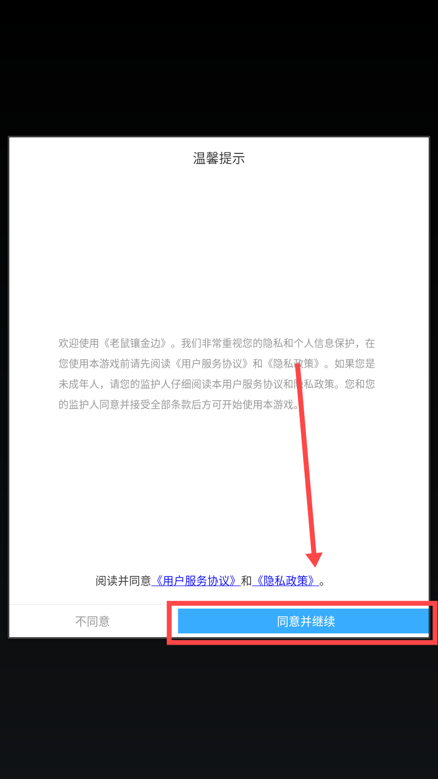 1、打开游戏,点击【同意并继续】。