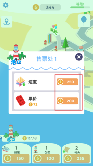 3、点击【售票处1】,可以提升该售票处的销售速度和票价。