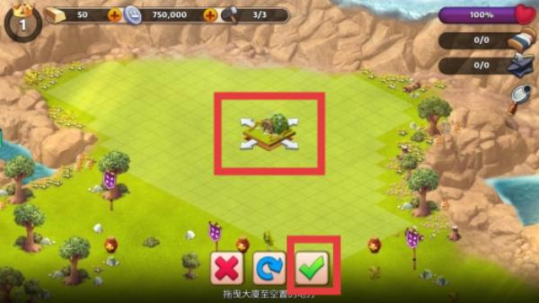 3、拖动房子在区域内的某一处,点击下方打勾按键,即可建造。