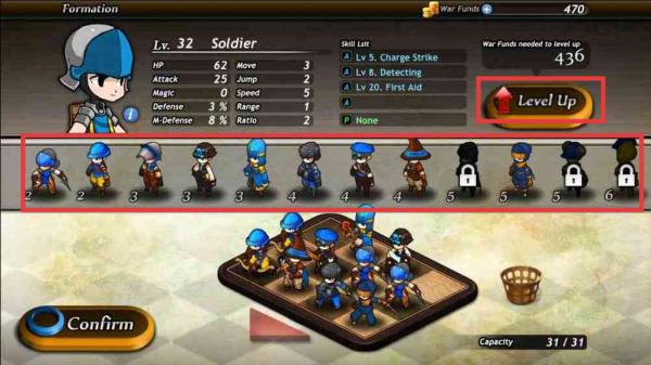 3、点击【LevelUp】,可以给不同职业的角色升级。