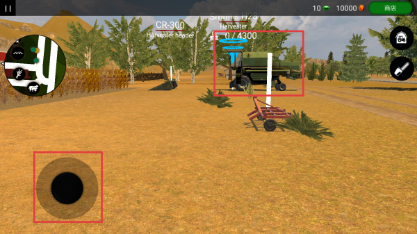 2、划动摇杆操控角色走到收割机附近,并驾驶收割机。