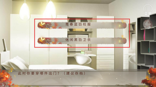 3、选择【青春蓝白校服】智商加5,选择【休闲黑白卫衣】魅力加5。