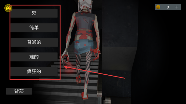1、打开游戏,选择游戏难度,点击【鬼】难度,玩家存在感降低,不易被发现。