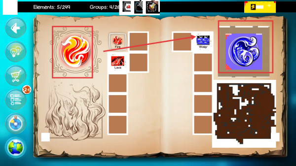 3、点击选择两种元素,再拖动两种初始元素合成新元素,后续可以将新元素不断进行合成。