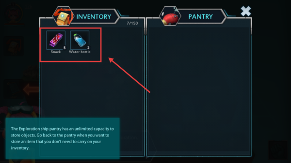 2、点击将储藏室的物品放入背包。