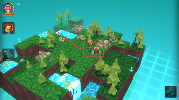 3、点击箱子,移动角色拾取材料,后续可以制作工具。
