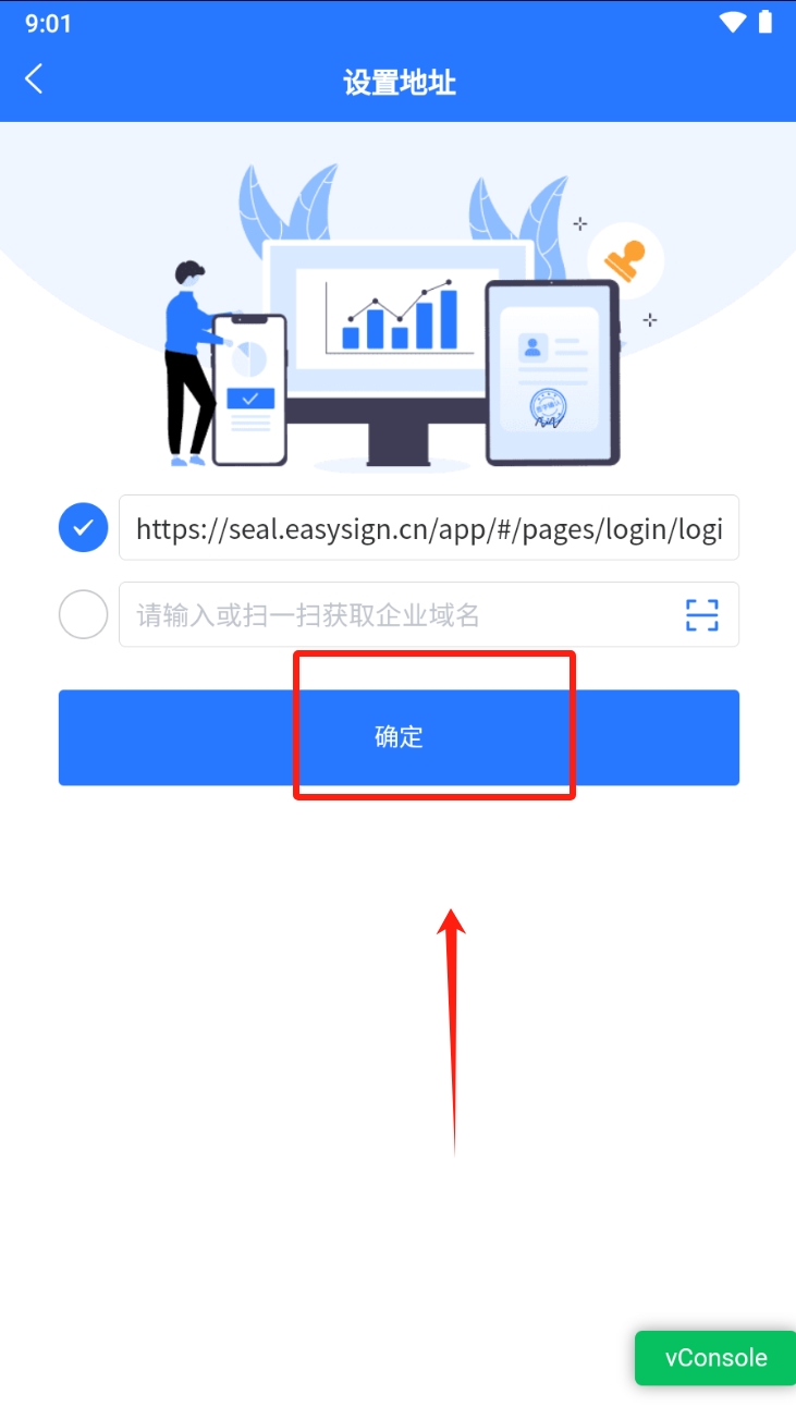 3、最后,设置企业地址。在设置地址页面,输入或扫描获取企业域名,并点击“确定”按钮完成企业地址的设置。