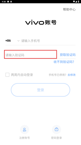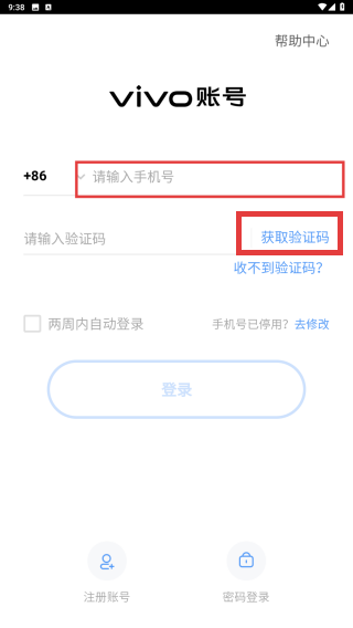 1、打开界面,输入【手机号】后,点击【获取验证码】。