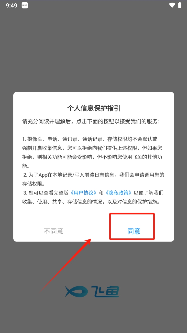 1、首先,阅读并同意隐私政策。在弹出的个人信息保护指引窗口中,阅读相关条款,点击“同意”按钮以接受服务条款。