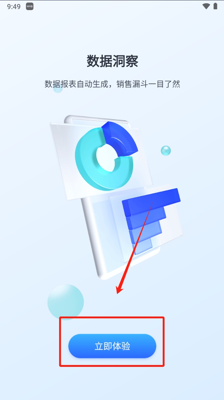 2、其次,体验数据洞察功能。在数据洞察介绍页面,点击“立即体验”按钮,开始体验数据报表自动生成和销售漏斗分析功能。