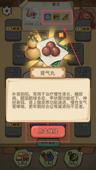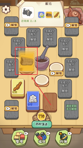 3、集齐配方中的三味药材后,即可制作一味中药。