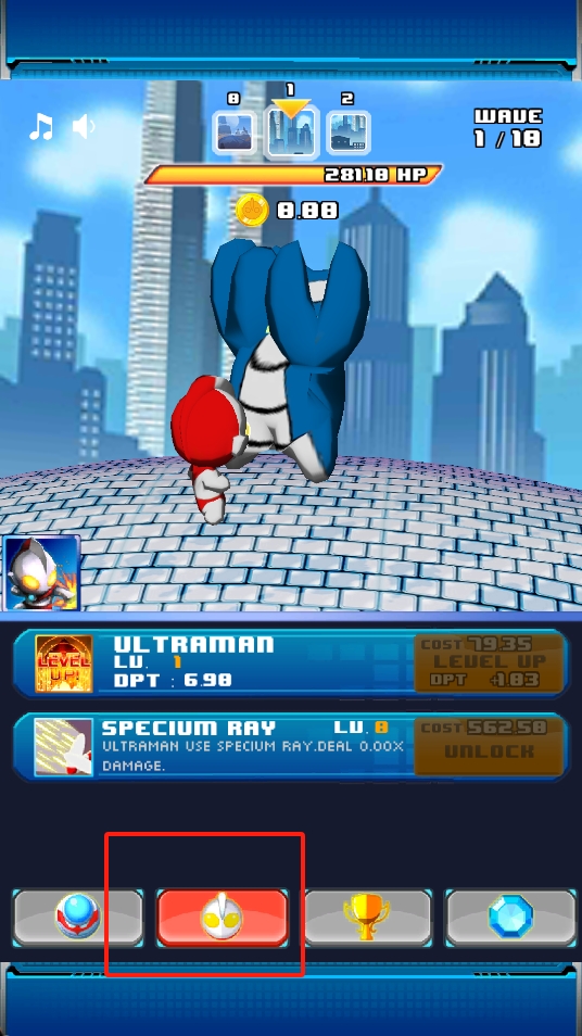 2、操纵战斗:通过点击屏幕进行攻击,面对不同的怪兽,释放奥特曼的绝招,快速击败敌人。