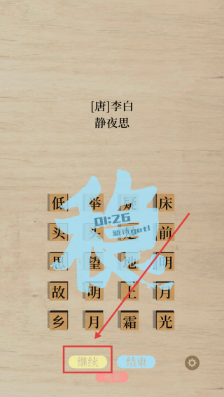3、将所有字块正确贴完后即可通关,点击【继续】进入下一关。