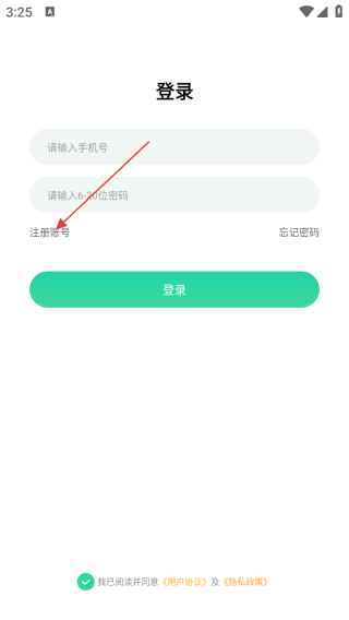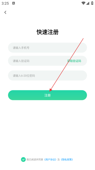 3、进入注册界面输入手机号和验证码以及密码即可注册。