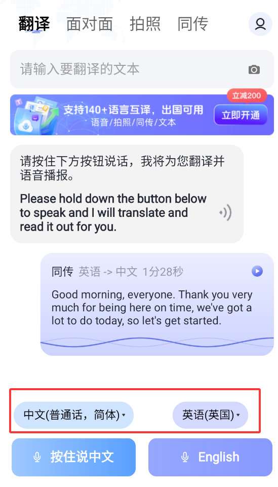 3、语音翻译功能允许用户进行实时对话翻译,通过简单的语音输入,实现流畅交流。让沟通变得更加便利。