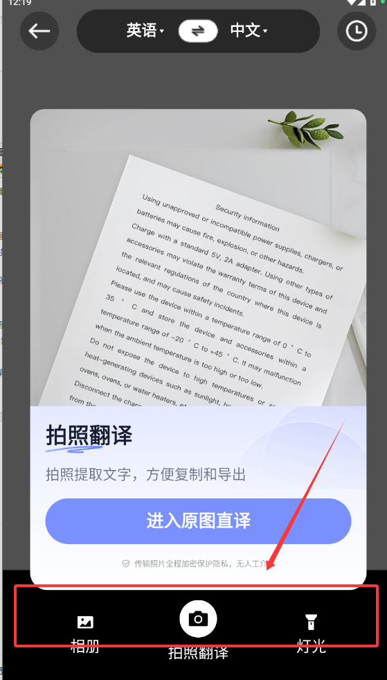1、拍照翻译,用户只需拍摄文本即可实现快速翻译,适用于各种文字信息的翻译需求,尤其适合在国外旅行时使用。