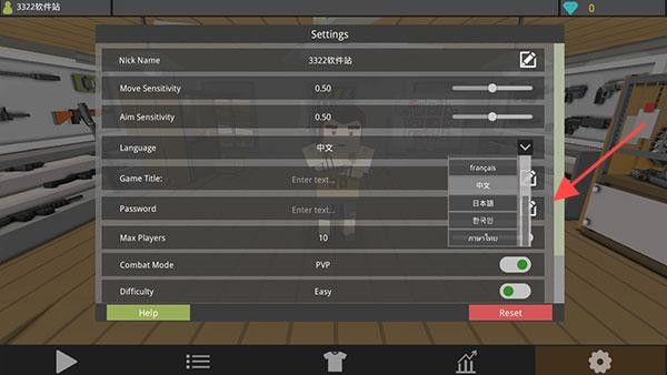 3、最后点击右下角红色的【Reset】按钮,并【重启游戏】,即可成功设置中文。