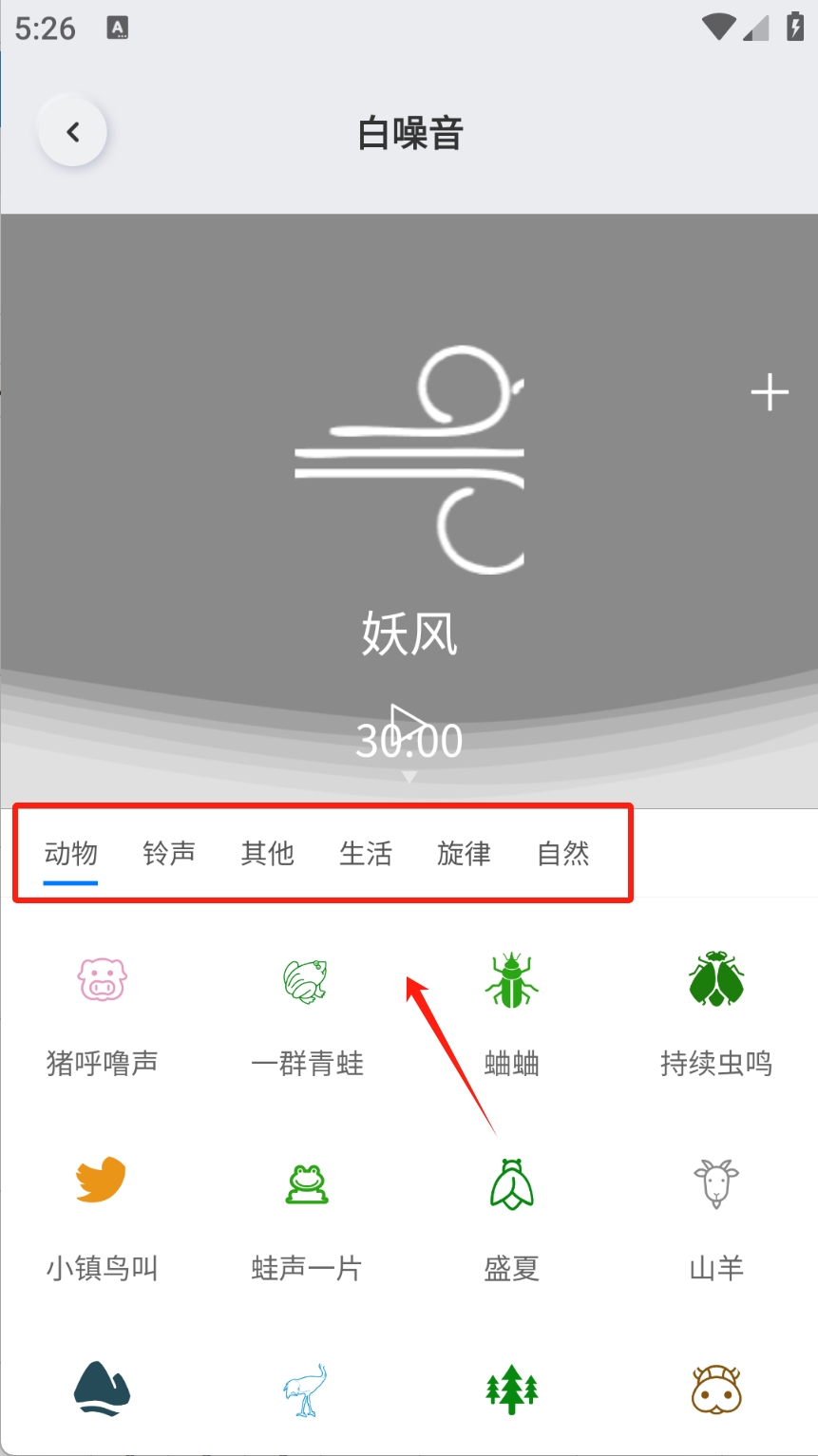 3、在白噪音页面选择喜欢的声音类型进行播放。