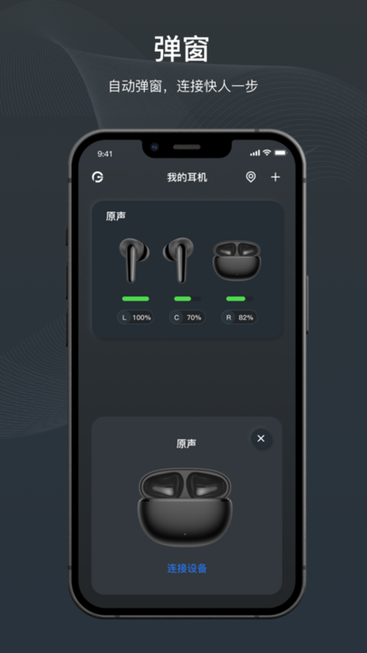 1、首次连接引导:打开APP后按照动画指引完成配对,自动识别耳机型号并加载最佳配置方案。