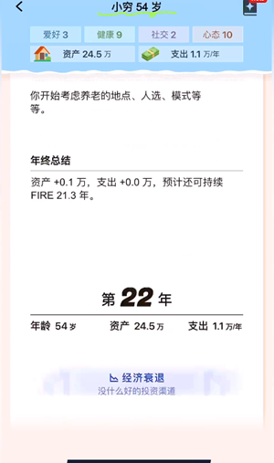 2、玩家需学习投资理财,平衡收支,实现财务自由。