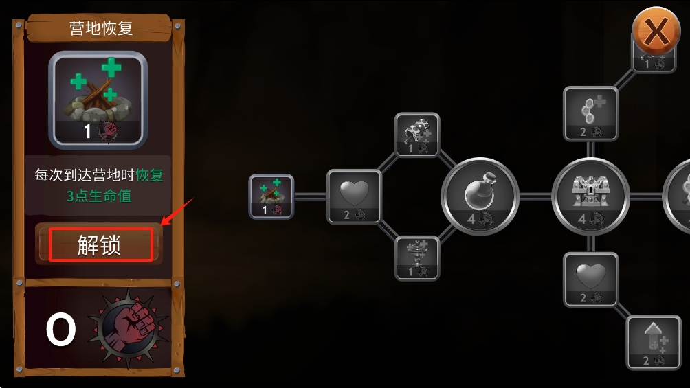 3、进入技能解锁界面,满足条件后点击 “解锁” 按钮解锁技能,提升角色能力。