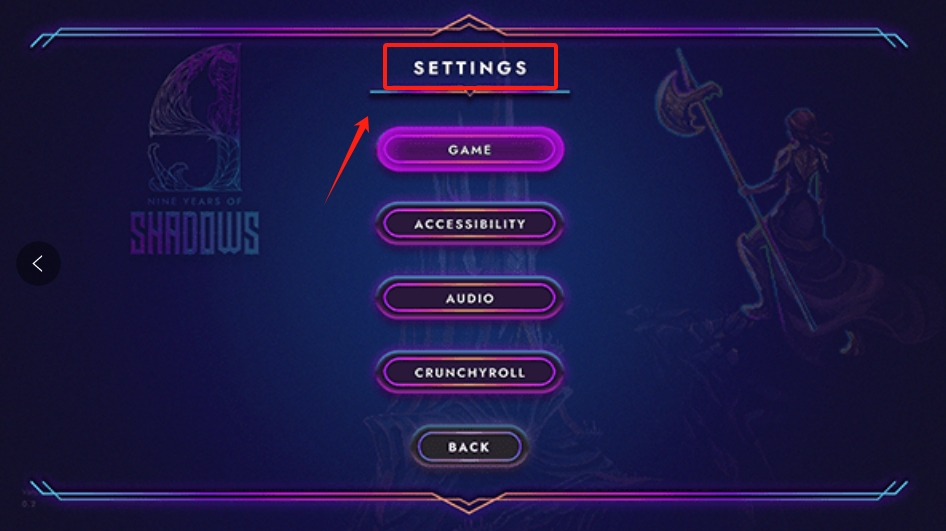 2、点击“SETTINGS”,进入设置界面,可调整游戏、辅助功能等选项。