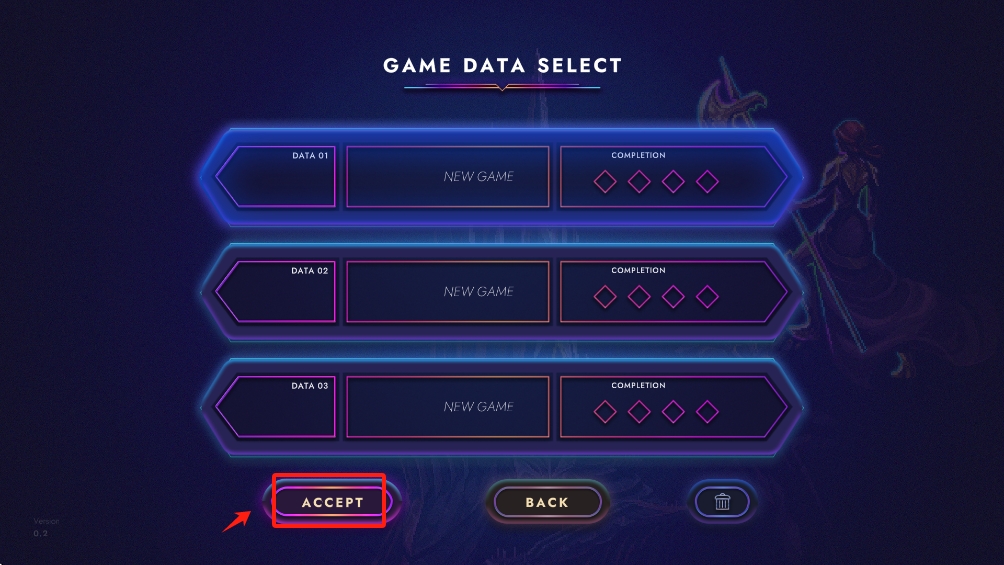 3、选择“DATA 01”,点击“ACCEPT”确认并开始新游戏。