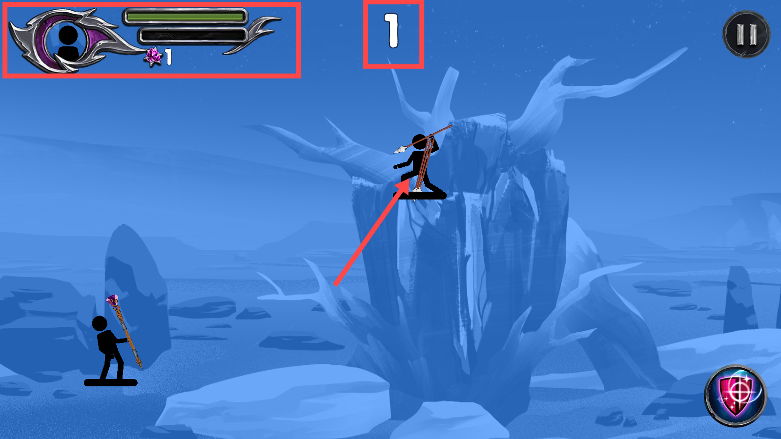 2、游戏过程中,遇到持弓敌人时,点击右下角技能图标进行攻击,注意躲避敌人攻击。