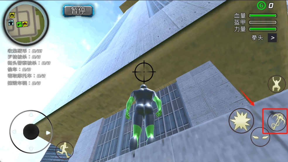 3、点击右下方的技能按钮,可攀爬摩天楼,释放相应技能。