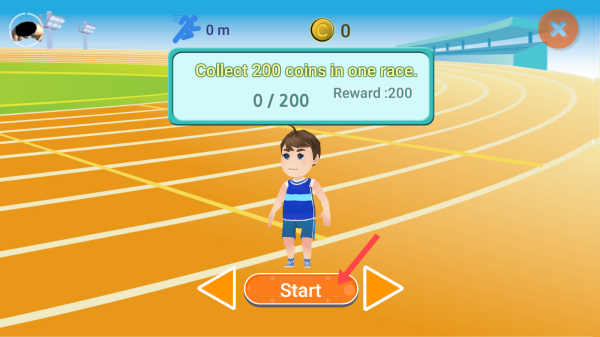 3、在跑步游戏界面,点击【Start】开始比赛,按提示收集200枚金币获取奖励。