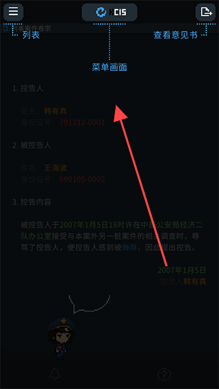 3、游戏界面最上面的三个标志分别是列表,菜单界面cls和查看意见书的按钮。