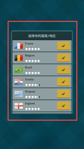 1、在游戏界面中,从列表里选择自己代表的国家/地区。