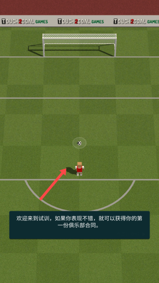2、进入训练场景,操控角色按箭头方向接近足球。