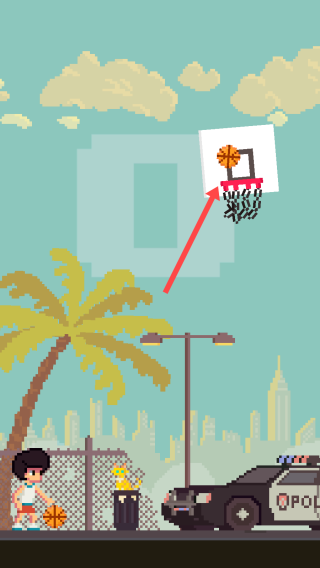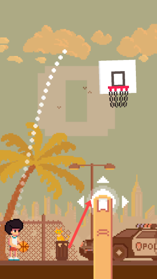 2、游戏中按照箭头方向操作,将篮球投向篮筐。