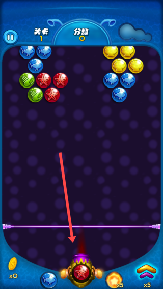 2、进入游戏画面后,按箭头方向发射泡泡。