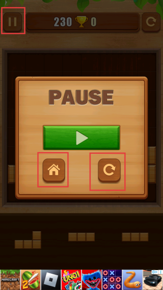 2、拖动下方木块,按照形状合理摆放,当任意一行列的格子被填满时,即可消除。