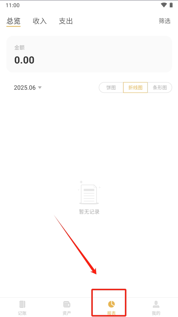 3、点击“报表”按钮查看您的收入和支出图表及统计数据。