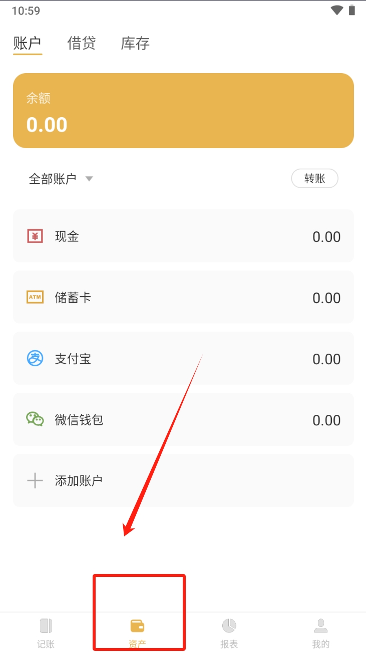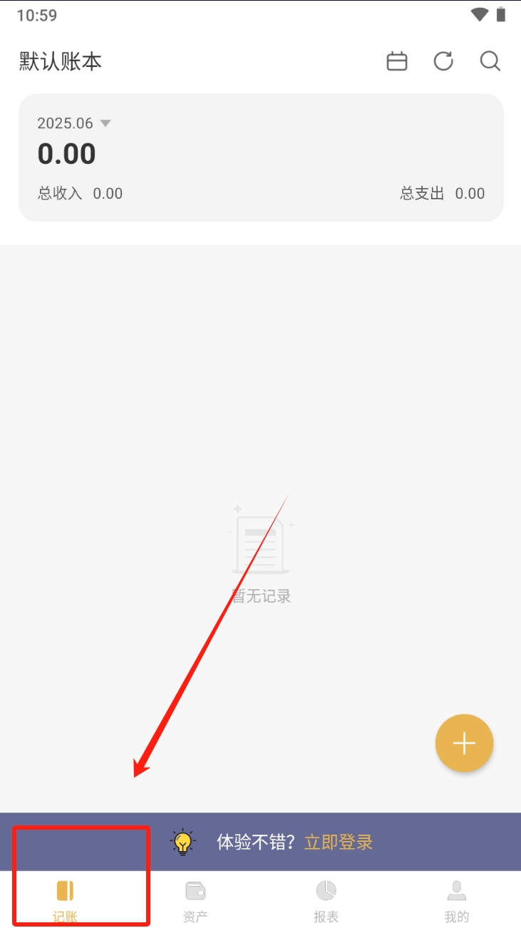 1、点击底部导航栏的“记账”按钮,进入记账页面开始记录。