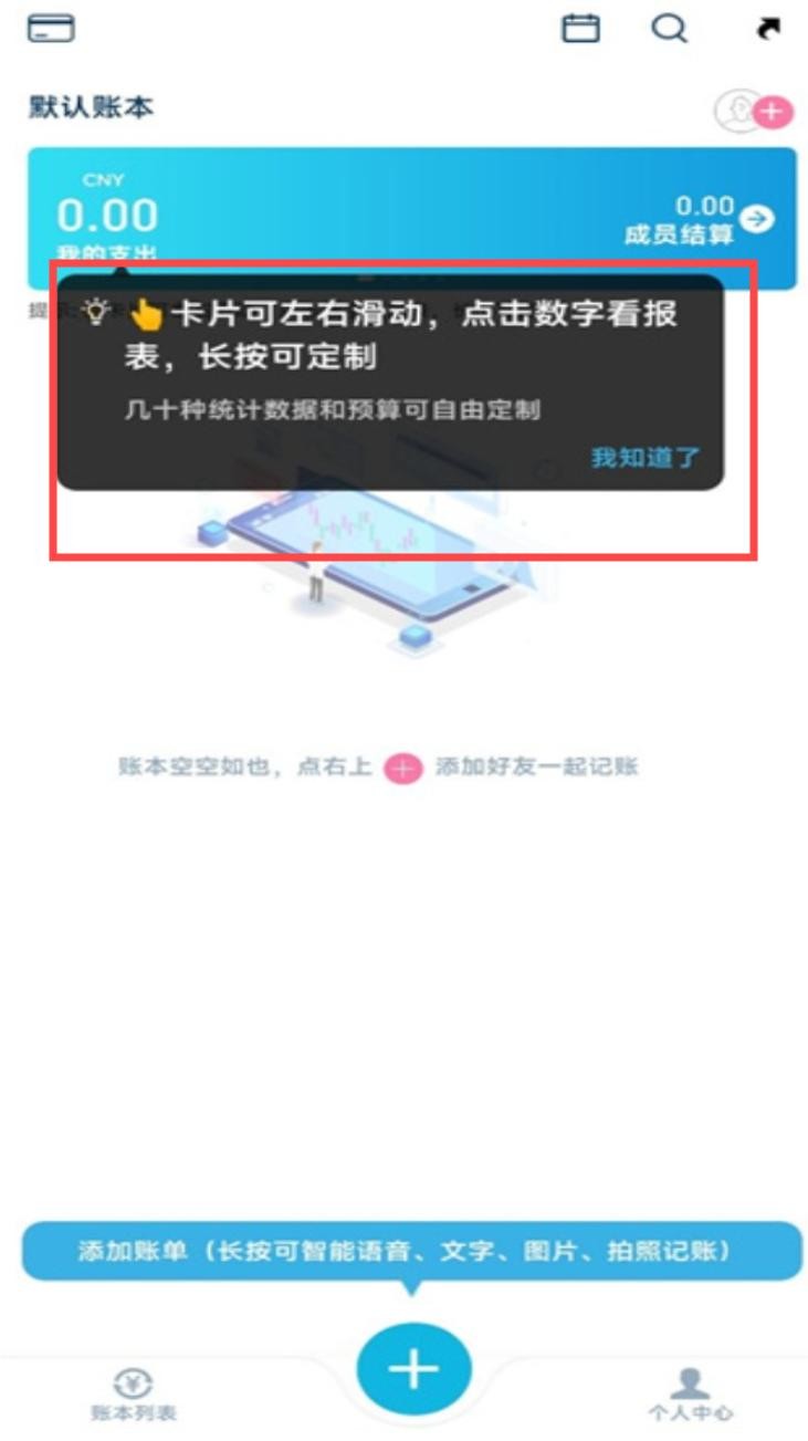 3、在账本页面,左右滑动卡片查看报告,点击数字进行详细定制。