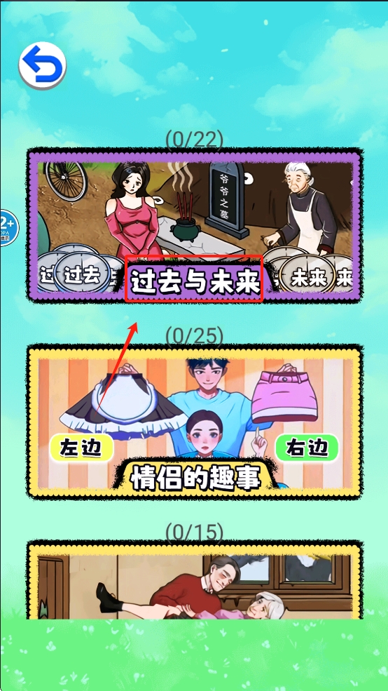 1、在关卡选择界面,点击第一个可进入的关卡,如“过去与未来”。