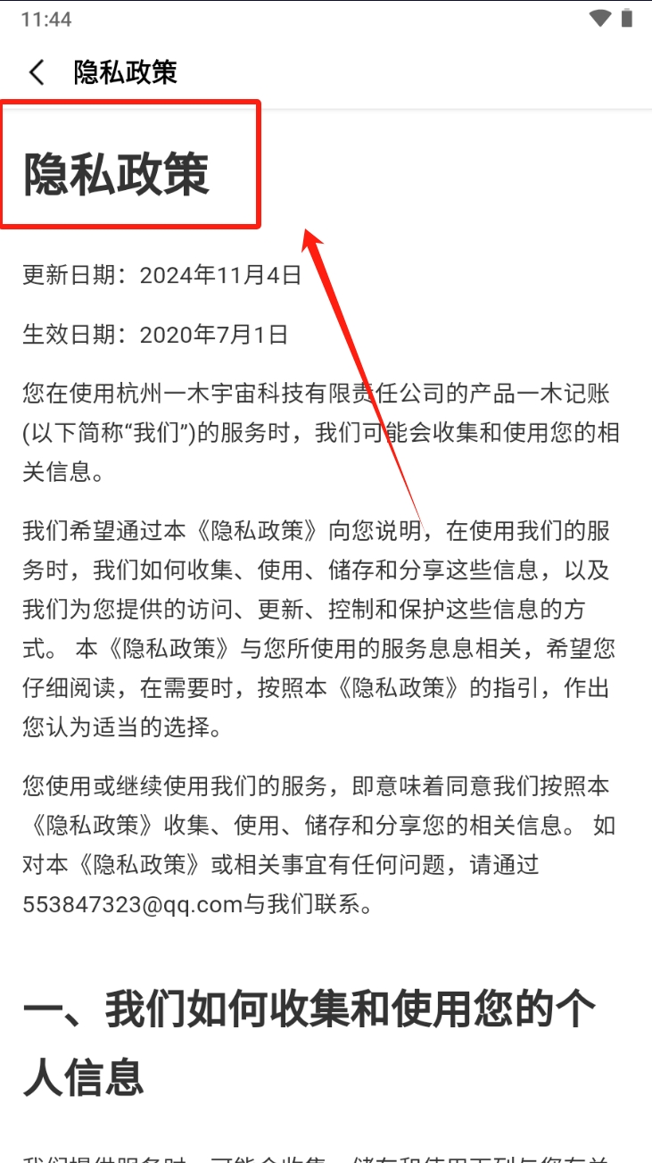 3、查看《隐私政策》,了解个人信息的收集和使用方式。